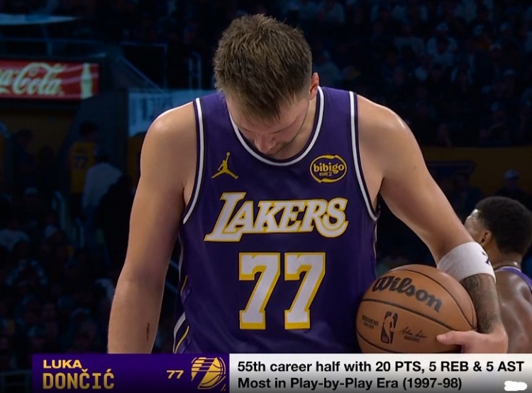 Lakers đối đầu với Spurs trên sân nhà. Doncic ghi 22 điểm, 6 rebound và 7 kiến tạo trong hiệp một. Theo thống kê từ đài truyền hình, đây là lần thứ 55 trong sự nghiệp Doncic ghi được 20+5+5 trong giờ nghỉ giải lao, nhiều nhất kể từ khi thống kê được thu thập ở mùa giải 1997-98.