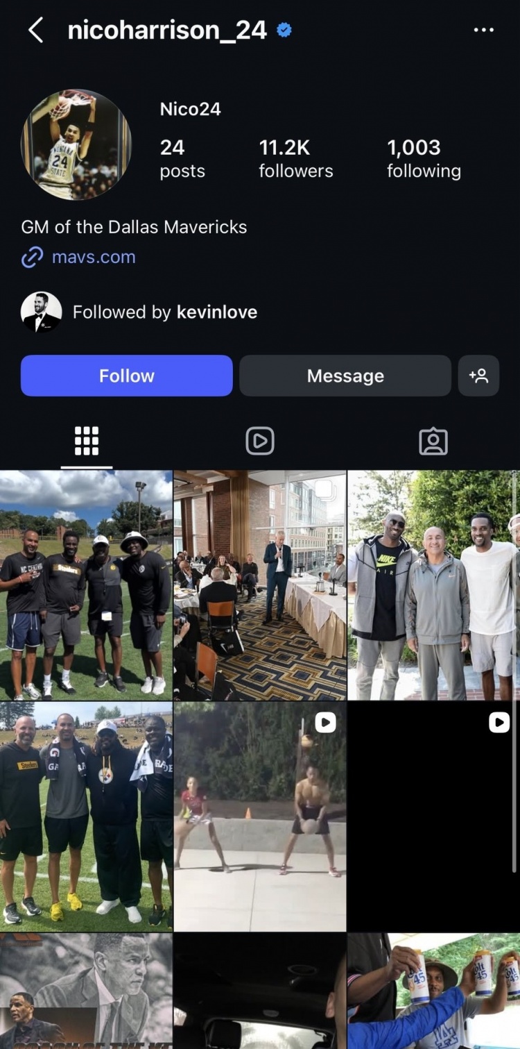 Trước khi bị sa thải, hồ sơ IG của Harrison là "Tổng giám đốc của Mavericks" có liên kết tới trang web chính thức của Mavericks.
