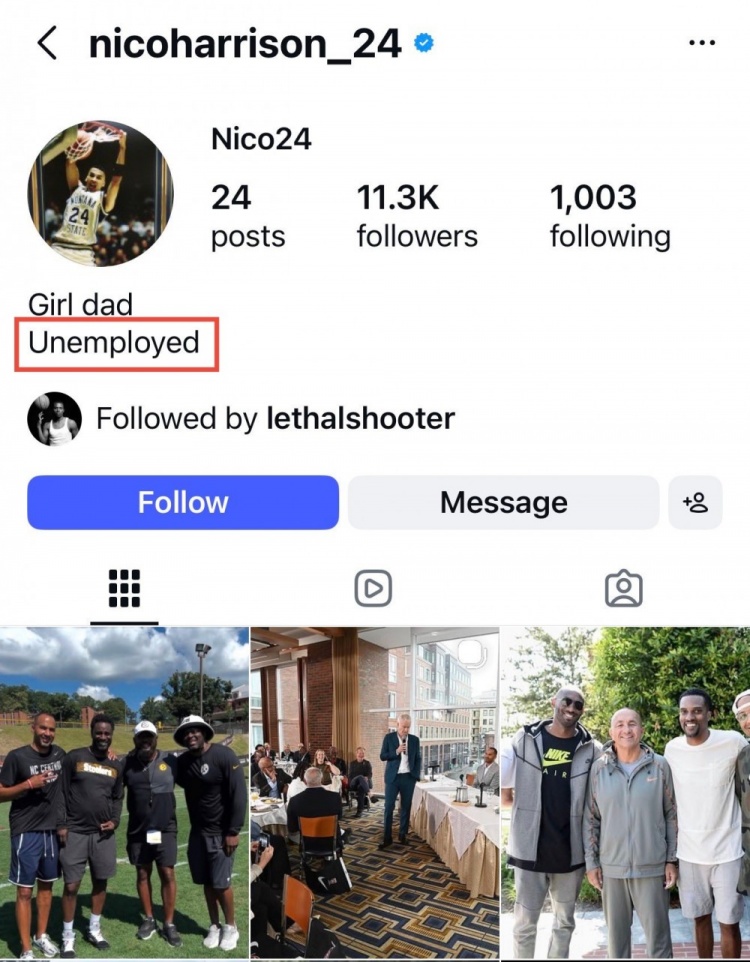 Sau đó, cư dân mạng phát hiện ra rằng Harrison đã thay đổi trang cá nhân của mình trên Instagram thành "thất nghiệp".